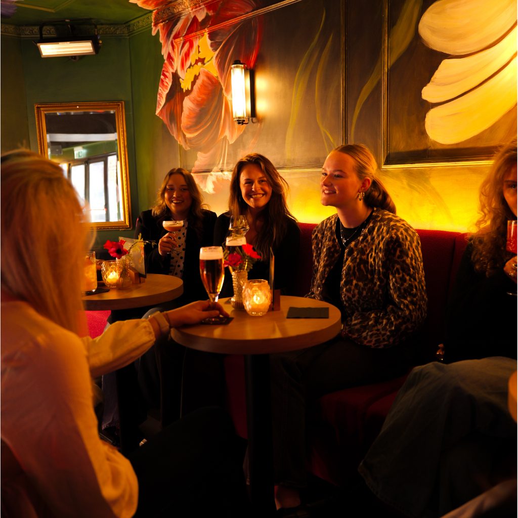 Cocktails, bites en een sfeer waar je bij blijft hangen. Hier plan je je volgende trip met vrienden, vier je de overwinning van je team of geniet je gewoon van een topavond. Alles in een stijlvol, handgeschilderd interieur dat net zo uniek is als de avond zelf.